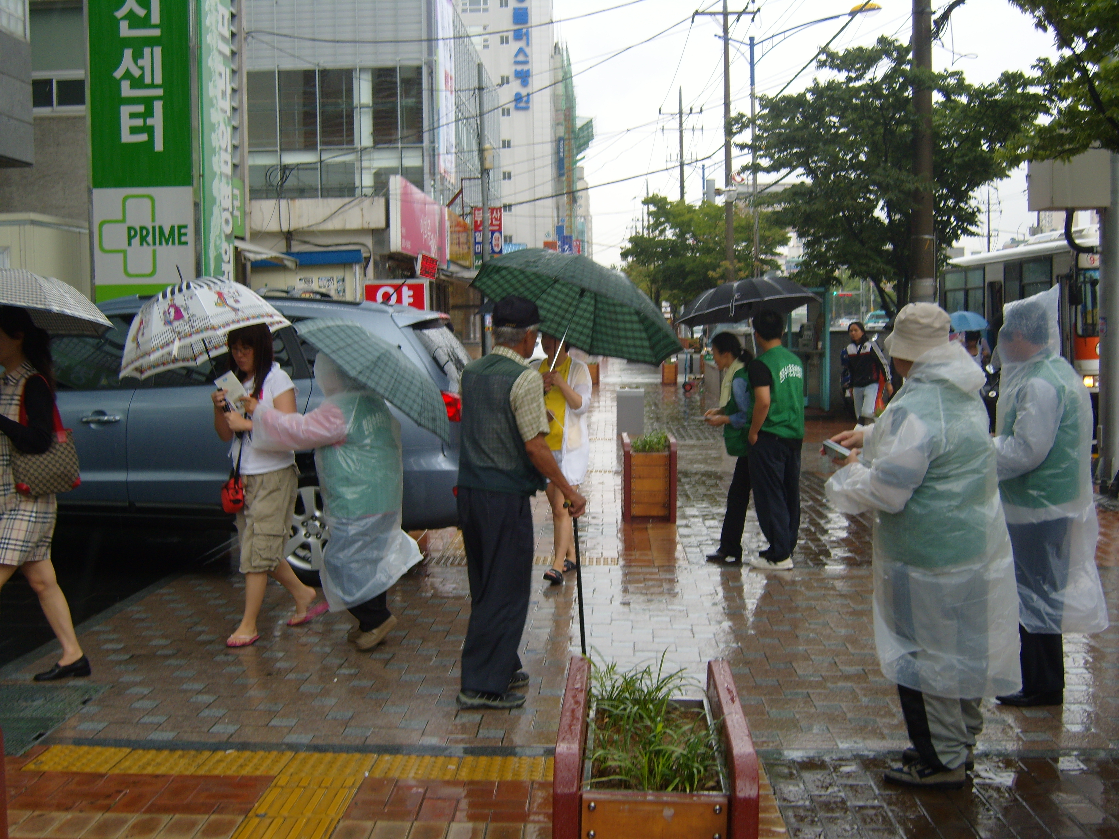 “주민과함께하는 괴정천 가꾸기” 운동 캠페인을 펼쳤다. 홍보용 팜플렛을 전해주며