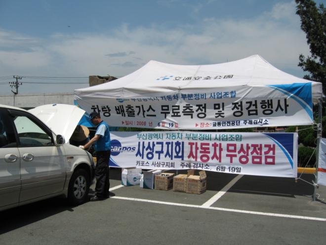고객감동 실현을 위해 부산광역시 자동차 부분정비 사업조합 사상구지회. 북구지회등과 합동으로 179대의 차량에 대하여 소모품 무상교환 서비스 실시 하였읍니다.